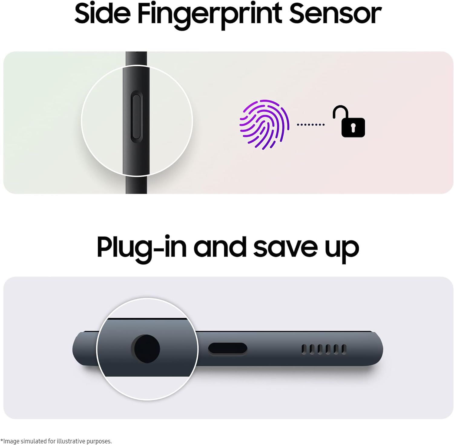 • Side Fingerprint Sensor: Your security, double-checked by the side fingerprint sensor accessible only by your fingerprint.